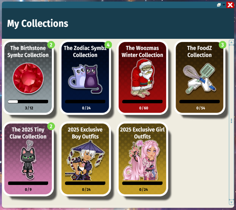 Once you fully complete a collection, it will be proudly displayed on your Profile Window for everyone to see.
