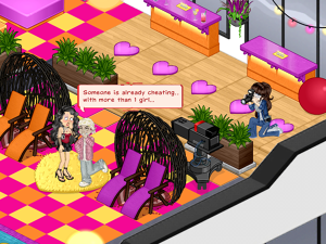Our eagle-eyed photographer managed to capture a glimpse of their confidential chat, with a speech bubble clearly indicating that "Someone is already cheating... With more than 1 girl!"