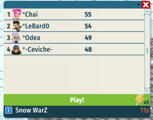 Al unirte a un equipo y jugar al minijuego de BatallaZ de Nieve, ganarás puntos que irán directamente a la tabla de clasificación.