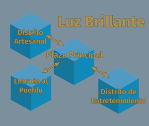 - Plaza Principal - El corazón de la aldea, con espacio para cuatro estatuas que honren a los arquitectos de Luz Brillante.