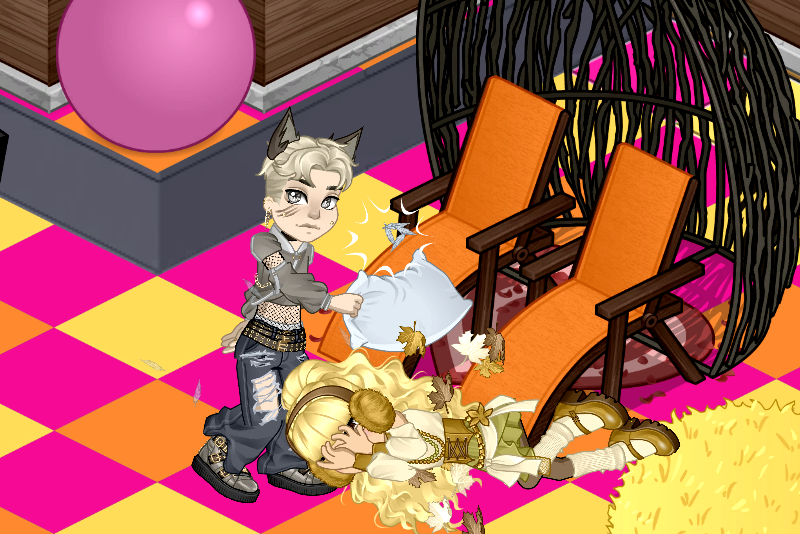 Une Bagarre au Sky Lounge 2v1 entre le couple goth "Burp et shine" et 2m30, la taille du Woozen "2m30" remise en question. Son langage grossier lui a coûté sa dignité. Burp et shine se défendent comme des lionnes. Elles sont harrr, c'est tellement mignon !