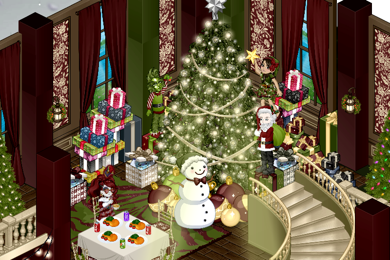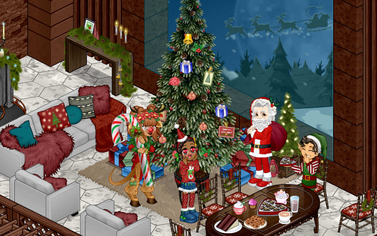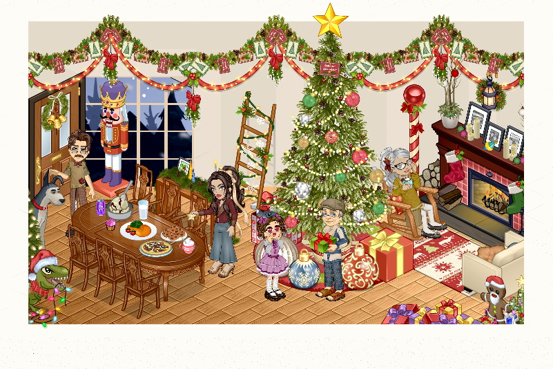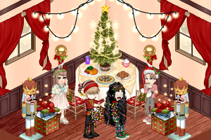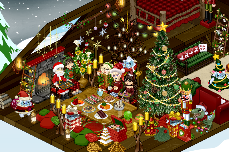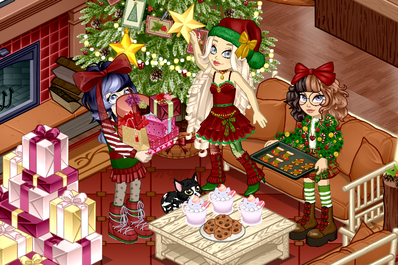 Neste ano o natal começou caótico, Hyuki o gato da MiiYumi, devorou o nosso peru assado, tivemos que improvisar com biscoitos e chocolates quentes, mas nada abalou o nosso espírito natalino, enquanto a Jennifer enfeitava a árvore e MiiYumi estava organizando os presentes, Lizzie deixava mais uma fornada de biscoitos pronta, mas parece que um felino já estava pronto para o próximo ataque.