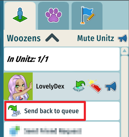 - Quando terminar com eles, você pode enviá-los de volta para a Fila para deixar outros entrarem. (Observação: você não pode puxar mais pessoas do que a capacidade da Unitz. Se a lotação foi atingida, precisa enviar alguém de volta para a Fila antes.)
